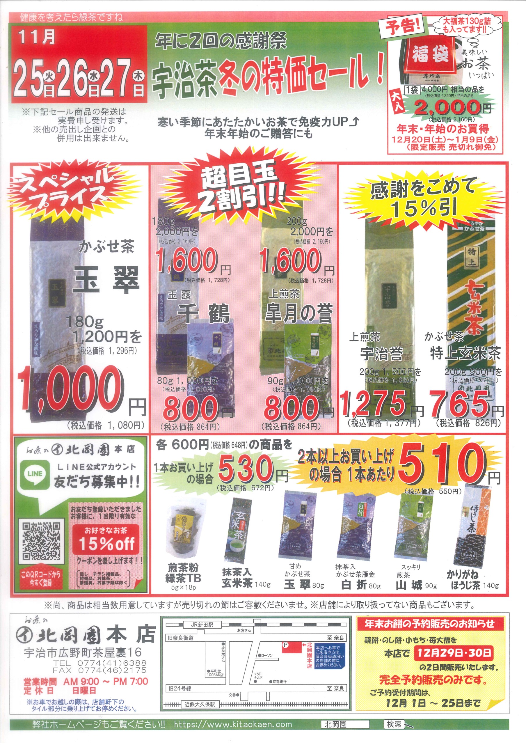 本店「お歳暮のご案内と宇治茶 冬の大特価セール」R7.11月25日~11月27日